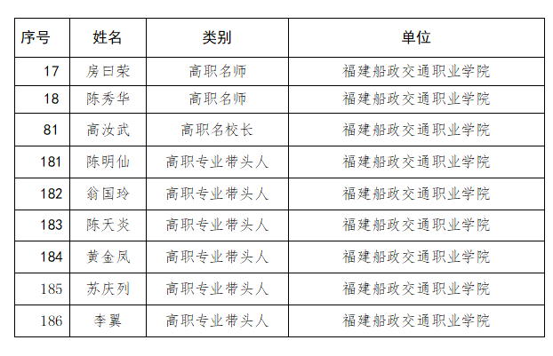 喜訊 | 我院房曰榮等9位教師被確定為福建省職業(yè)院校名師、名校長和專業(yè)帶頭人