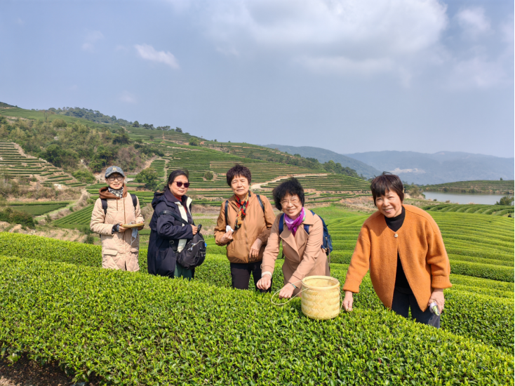 在云霧繚繞、風(fēng)景如畫的長(zhǎng)龍茶山,大家認(rèn)真聆聽茶文化講解,進(jìn)行采茶體驗(yàn)。根據(jù)”兩葉一芯”的采摘標(biāo)準(zhǔn),手指一捏一提一放,將茶芽放入茶簍里。圍爐煮茶,茶香裊裊,大家暢然心懷,感受中華茶文化的魅力。