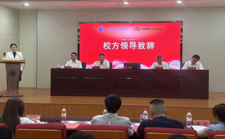 開班儀式上,陳艷紅副院長(zhǎng)發(fā)表熱情洋溢的致辭,深刻闡述了“以教促產(chǎn)、以產(chǎn)助教”的核心理念,強(qiáng)調(diào)通過延伸教育鏈、服務(wù)產(chǎn)業(yè)鏈、支撐供應(yīng)鏈、打造人才鏈、提升價(jià)值鏈,構(gòu)建產(chǎn)教深度融合的生態(tài)系統(tǒng)。她寄語(yǔ)“金龍班”的學(xué)子們,要珍惜學(xué)習(xí)機(jī)會(huì),扎實(shí)理論基礎(chǔ),勇于實(shí)踐探索,提升國(guó)際視野,在廈門金龍的廣闊平臺(tái)上綻放青春光彩,成為推動(dòng)中國(guó)客車行業(yè)國(guó)際化進(jìn)程的中堅(jiān)力量。
