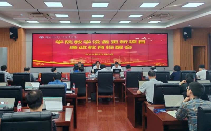 為深入貫徹落實習(xí)近平總書記關(guān)于黨的自我革命重要思想和來閩考察重要講話精神,認(rèn)真落實黨中央、省委全面從嚴(yán)治黨工作部署及學(xué)院工作要求,切實加強重大項目建設(shè)全過程監(jiān)督,強化廉政風(fēng)險防控,守住廉潔底線紅線,11月6日下午,學(xué)院紀(jì)委在福道園行政樓6樓第一會議室召開教學(xué)設(shè)備更新項目廉政教育提醒會,學(xué)院黨委委員、紀(jì)委書記張輝,相關(guān)職能部門及二級學(xué)院主要負(fù)責(zé)人、項目分管同志、紀(jì)檢委員、具體經(jīng)辦人員,紀(jì)委辦全體干部參加了會議。