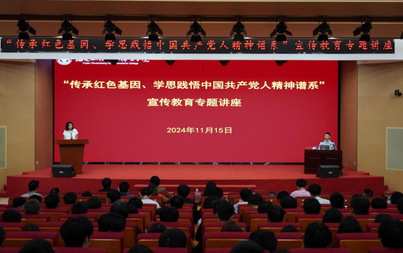 為深入實(shí)施時(shí)代新人鑄魂工程,運(yùn)用好傳承好紅色基因,推動(dòng)黨史學(xué)習(xí)教育常態(tài)化長效化,教育引導(dǎo)廣大學(xué)生增強(qiáng)踐行“兩個(gè)維護(hù)”的高度自覺、堅(jiān)定愛國奮斗挺膺擔(dān)當(dāng),11月15日,學(xué)院在福船園藝新樓331學(xué)術(shù)報(bào)告廳舉辦了“傳承紅色基因、中國共產(chǎn)黨人精神譜系”宣傳教育專題講座。機(jī)關(guān)黨總支、馬克思主義學(xué)院教職工代表,各二級(jí)學(xué)院學(xué)生代表共兩百余人參加了講座。