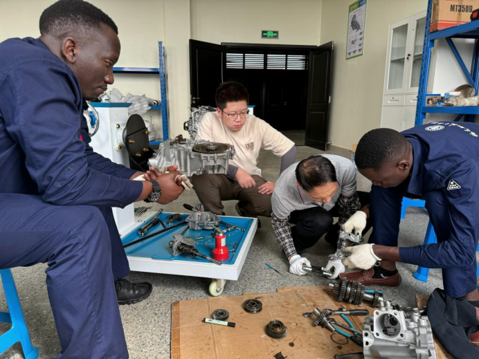 “職教出海”是職業(yè)教育服務(wù)大國外交與國際產(chǎn)能合作的有效路徑,融匯了東方古老智慧與工匠精神,搭建的是民心相通、文明互鑒的橋梁。汽車學(xué)院在“職教出?!卑l(fā)展路線上始終堅(jiān)持高質(zhì)量、品牌化、可持續(xù),在發(fā)展目標(biāo)上逐步從“建成”向“辦好”轉(zhuǎn)移。堅(jiān)定不移的促進(jìn)中國教育標(biāo)準(zhǔn)、方案、模式和制度的“走出去”與“融進(jìn)去”,與“一帶一路”共建國家共享中國的職教經(jīng)驗(yàn),通過促進(jìn)技術(shù)進(jìn)步與人力資源發(fā)展,支持各國增強(qiáng)自主發(fā)展能力,為構(gòu)建人類命運(yùn)共同體作出積極貢獻(xiàn)。2018年以來,汽車學(xué)院積極踐行“一帶一路”倡議,先后指導(dǎo)肯尼亞、加蓬、科特迪瓦等非洲國家創(chuàng)辦汽車專業(yè)并開展師資培訓(xùn),專門制定適應(yīng)當(dāng)?shù)卦盒P枰钠噷I(yè)建設(shè)標(biāo)準(zhǔn)、實(shí)驗(yàn)實(shí)訓(xùn)條件建設(shè)標(biāo)準(zhǔn)、課程標(biāo)準(zhǔn),中英文教材及教學(xué)資源、中法文教材及教學(xué)資源。