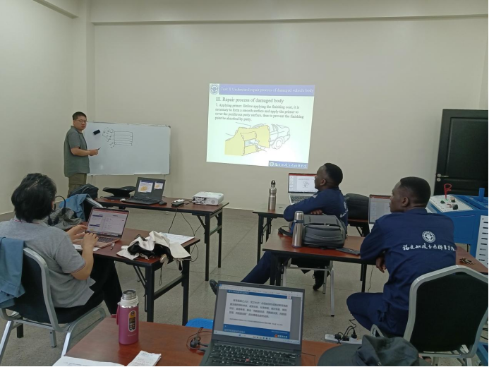 2024年6至11月,學(xué)院職教出海選派的優(yōu)秀師資團(tuán)隊(duì)黃林火、張宇峰兩位教師再次啟程,跨越萬里,從福建到非洲大陸,他們揚(yáng)帆出海,乘勢而上,持續(xù)向世界輸送“船政模式”職業(yè)教育品牌,圓滿完成了為期半年的烏干達(dá)汽車專業(yè)骨干師資培訓(xùn)。團(tuán)隊(duì)因“國”制宜,制定適應(yīng)當(dāng)?shù)卦盒P枰钠噷I(yè)建設(shè)標(biāo)準(zhǔn)、實(shí)驗(yàn)實(shí)訓(xùn)條件建設(shè)標(biāo)準(zhǔn),精心設(shè)計(jì)汽車發(fā)動(dòng)機(jī)構(gòu)造與維修、汽車底盤構(gòu)造與維修、汽車電氣設(shè)備構(gòu)造與維修等9門課程標(biāo)準(zhǔn),并高質(zhì)量完成680課時(shí)的汽車技術(shù)培訓(xùn),輸出了一套國際化汽車維修專業(yè)職業(yè)教育標(biāo)準(zhǔn)。
