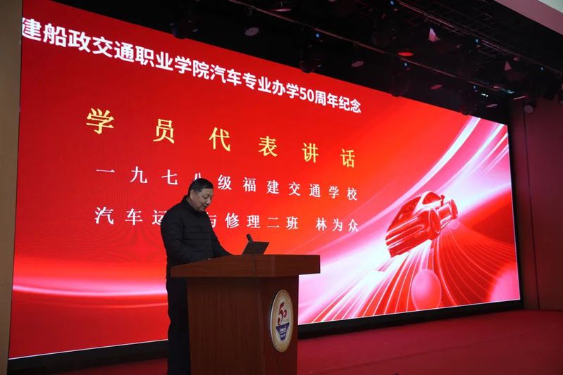 學(xué)院原黨委副書記陳炎生講述了他身為76級(jí)汽車專業(yè)校友,在校學(xué)習(xí)工作四十余年的崢嶸歲月,見證了學(xué)院和汽車專業(yè)成長(zhǎng)與發(fā)展。他表示,五十年來(lái),汽車專業(yè)從創(chuàng)立之初的艱辛探索,到如今形成以新能源汽車技術(shù)為核心的專業(yè)群,始終緊扣地方經(jīng)濟(jì)與產(chǎn)業(yè)需求,與時(shí)代并肩而行,培育出大批高素質(zhì)技術(shù)技能人才。在未來(lái),校友們將與母校休戚與共,砥礪前行,再創(chuàng)輝煌。