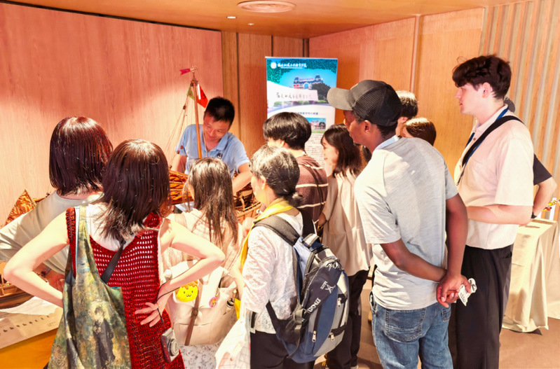 展位現(xiàn)場,精巧的福船模型、精湛的傳統(tǒng)技藝演示與豐富的圖文影像資料相得益彰,生動還原了水密隔艙這一古老造船智慧的奧秘,迅速吸引各國游客、參展方代表及媒體駐足關(guān)注。我院教師熱情接待每一位參觀者,細(xì)致講解福船的歷史淵源與文化價值,還通過互動演示工藝環(huán)節(jié),讓國際觀眾沉浸式感受中華優(yōu)秀非物質(zhì)文化遺產(chǎn)的獨特風(fēng)采。