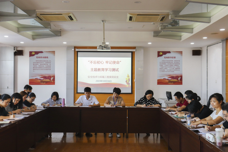為扎實(shí)推進(jìn)“不忘初心、牢記使命”主題教育,全面檢驗(yàn)黨員干部近期的實(shí)際學(xué)習(xí)成效,10月16日下午,安全技術(shù)與環(huán)境工程系黨總支開(kāi)展“不忘初心、牢記使命”主題教育測(cè)試,總支全體黨員參加。