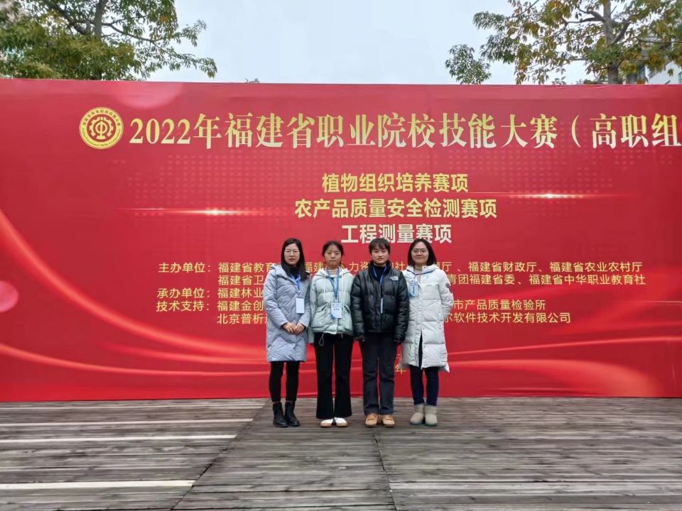 2022年12月至1月,2022年福建省高職院校技能大賽(高職組)在福建省各院校舉辦。其中,我院“化學(xué)實(shí)驗(yàn)技術(shù)”代表隊(duì)2020級(jí)環(huán)境工程技術(shù)專業(yè)陳佳誠同學(xué)榮獲二等獎(jiǎng)、孫逸秋同學(xué)榮獲三等獎(jiǎng);“水處理技術(shù)”代表隊(duì)2020級(jí)環(huán)境工程技術(shù)專業(yè)吳宇杰同學(xué)榮獲三等獎(jiǎng);“農(nóng)產(chǎn)品質(zhì)量安全檢測(cè)”代表隊(duì)19級(jí)食品營養(yǎng)與檢測(cè)專業(yè)柯怡亭、俞佳雯同學(xué)榮獲三等獎(jiǎng)。