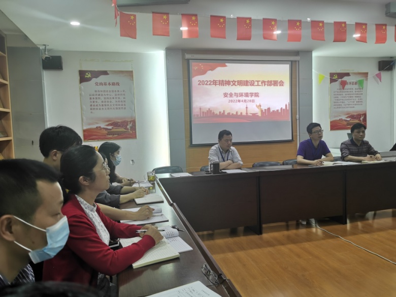 2022年4月28日下午,根據(jù)學院的部署,為學習貫徹習近平總書記關(guān)于精神文明建設(shè)工作的重要講話重要指示精神,貫徹落實中央文明委《關(guān)于深化新時代文明單位創(chuàng)建工作的意見》和省文明辦、廳文明辦工作部署,安全與環(huán)境學院召開精神文明工作部署會議。會議由安全與環(huán)境學院院長陳明仙主持,全院教職工參加了會議。