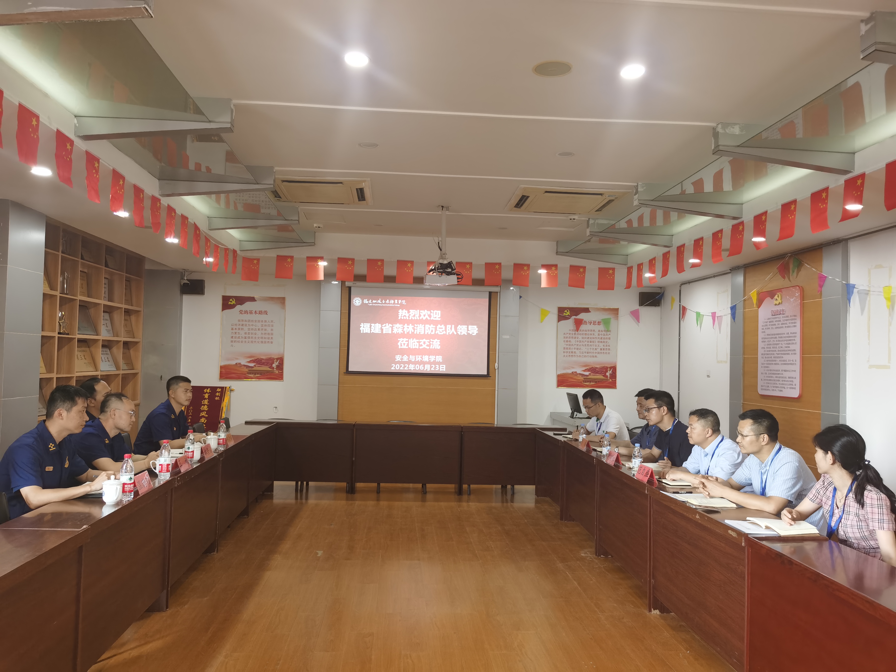 隨后,雙方到科技樓910會(huì)議室進(jìn)一步交流。陳明仙院長介紹了學(xué)院發(fā)展基本情況,王斌主任介紹了福建省森林消防總隊(duì)基本情況。