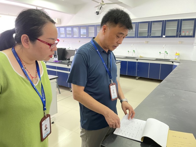 2022年9月30日,陳明仙院長、陳榕副院長、綜辦主任陳敏及實(shí)訓(xùn)中心成員深入實(shí)驗(yàn)室,查看實(shí)驗(yàn)室安全管理相關(guān)記錄情況以及實(shí)驗(yàn)室水、電、氣的安全情況等,重點(diǎn)檢查了危險(xiǎn)化學(xué)品的管理、儲(chǔ)存、保管、領(lǐng)用及記錄等情況。