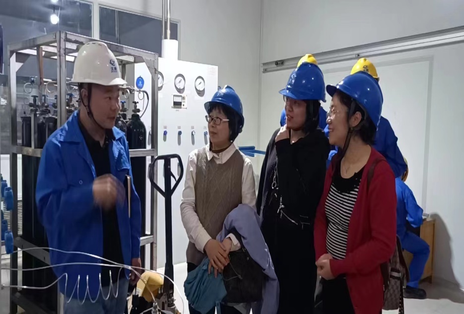 會后在項目經(jīng)理帶領(lǐng)下,大家參觀了公司的生產(chǎn)、配氣單元與氣體檢測單元,其中就氣體檢測的流程、儀器的運行、氣瓶室構(gòu)造和布局,老師們與企業(yè)技術(shù)負責人進行了深入的交流和探討。