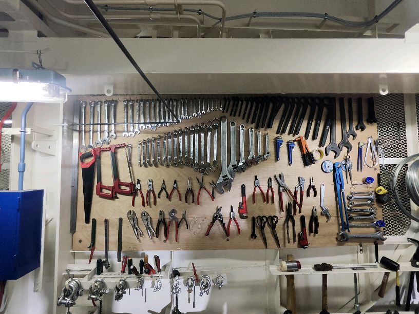 前三個(gè)月是跟著銅匠師傅干白班,剛開始一切都不熟悉,機(jī)艙同事們熱情的給我介紹著機(jī)艙的布局,工作間的工具以及每層的設(shè)備,工作間的工具琳瑯滿目,同事們也耐心的教我使用的方法,通過時(shí)間的推移,我也逐漸成長(zhǎng)起來,在這前三個(gè)月里學(xué)會(huì)了機(jī)工業(yè)務(wù)。