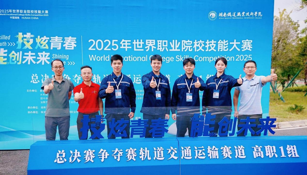 2025年8月27日至31日,2025年世界職業(yè)院校技能大賽軌道交通運(yùn)輸賽道總決賽爭(zhēng)奪賽在湖南省株洲市成功舉辦。我院軌道交通學(xué)院學(xué)子彭溢、鄭家鎮(zhèn)、李瑋杰、王希盈四位同學(xué)組成代表隊(duì),憑借扎實(shí)的專(zhuān)業(yè)功底、默契的團(tuán)隊(duì)協(xié)作和頑強(qiáng)的拼搏精神,最終從全國(guó)155支隊(duì)伍中成功突圍,斬獲本次大賽銀獎(jiǎng),為學(xué)院贏得了榮譽(yù)。
