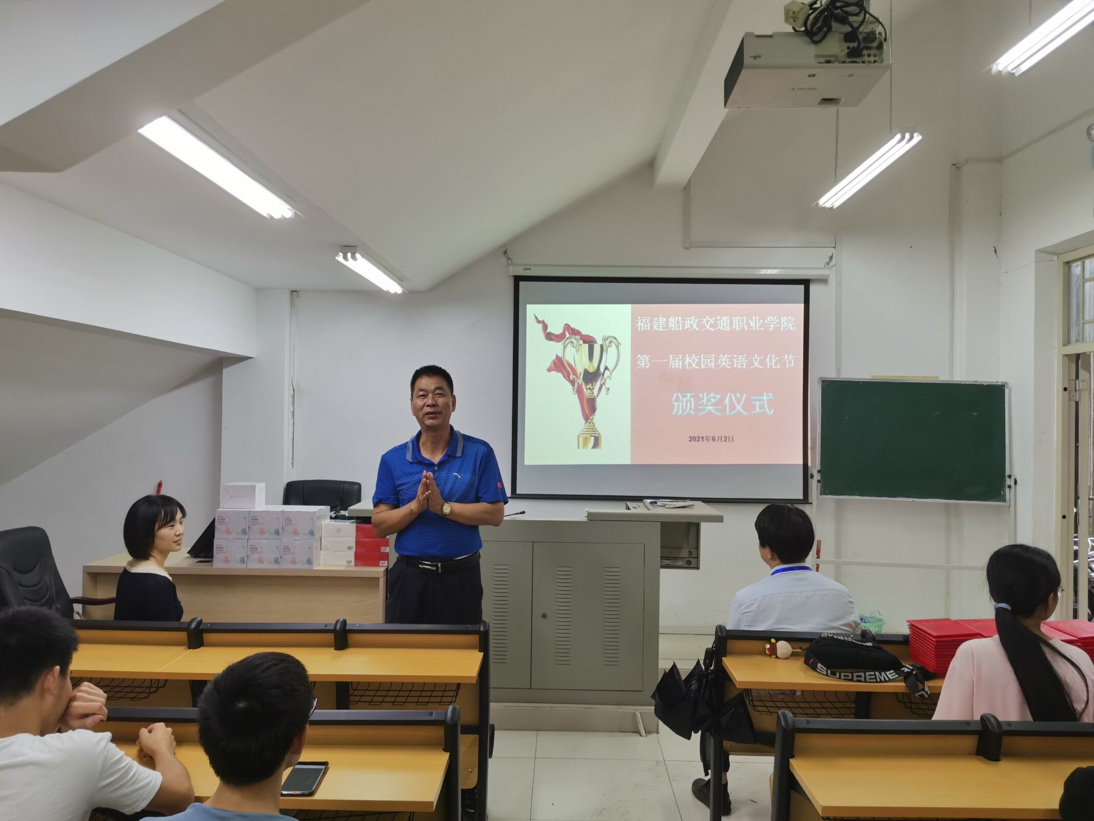 2021年6月2日,通識教育學(xué)院在多媒體教室召開福建船政交通職業(yè)學(xué)院第一屆校園英語文化節(jié)頒獎(jiǎng)儀式,通識教育學(xué)院方儒欽院長、金晶晶副院長和英語教研室吳菲菲主任出席此次頒獎(jiǎng)儀式,并為獲獎(jiǎng)選手們頒獎(jiǎng)。