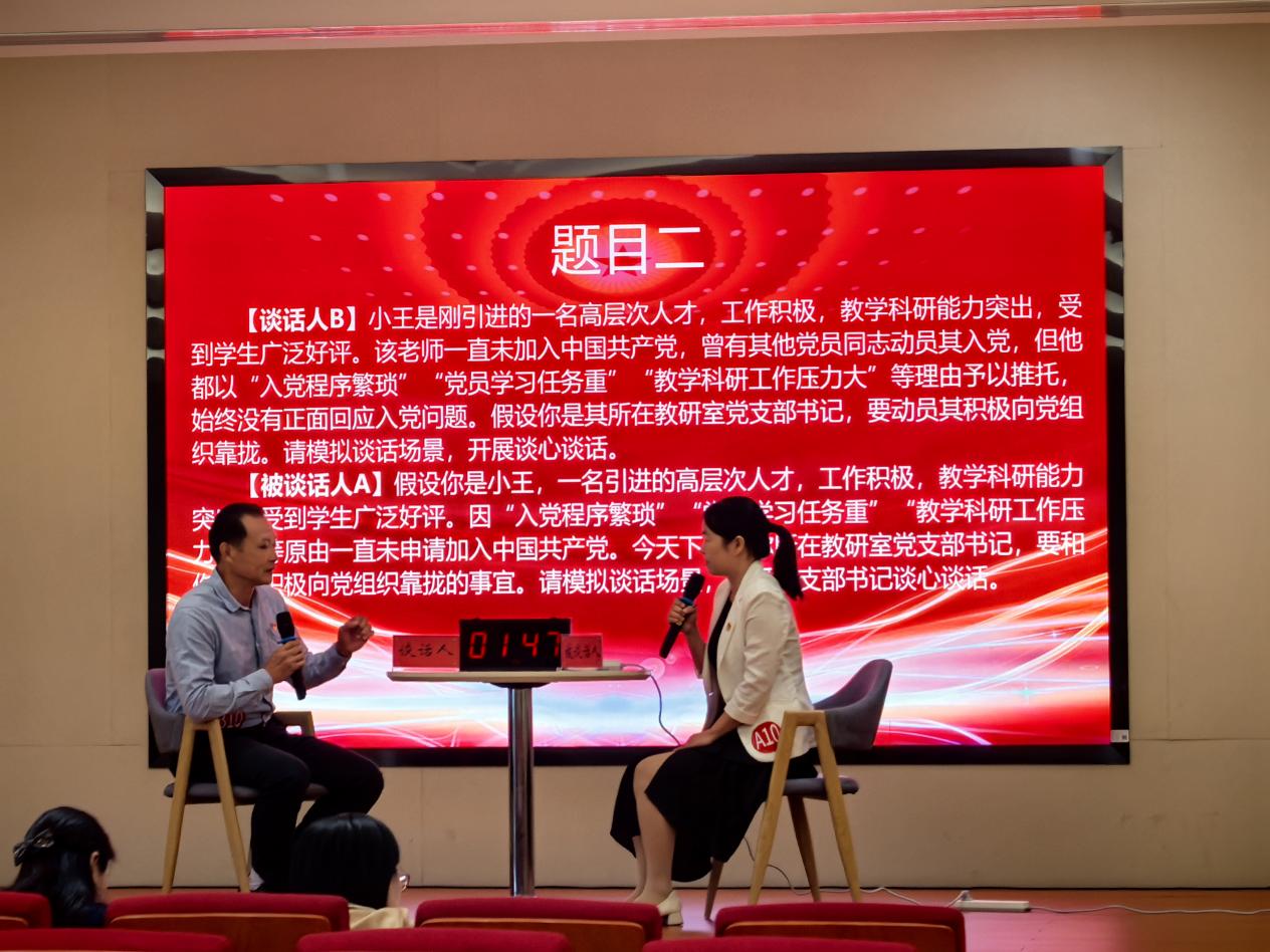 本屆大賽自10月啟動以來,先后完成了“主題黨日策劃”與“黨務(wù)知識測試”兩項賽程。10月22日于藝新樓進(jìn)行的“談心談話”與“微黨課”環(huán)節(jié)中,通識教育學(xué)院代表隊與各二級學(xué)院優(yōu)秀黨務(wù)干部同場競技,展現(xiàn)出扎實的黨務(wù)功底與職業(yè)素養(yǎng)。