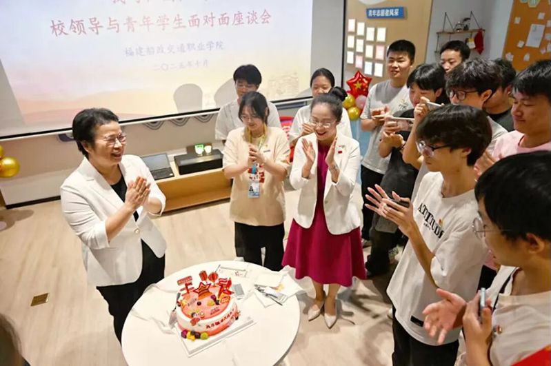 在青年之家,同學(xué)們圍繞專業(yè)發(fā)展、擇業(yè)方向、個人規(guī)劃及校園生活等話題踴躍發(fā)言;學(xué)院黨委副書記張輝與學(xué)院團委書記陳慧認真傾聽,對同學(xué)們提出的困惑逐一進行詳細解答并開展深入交流。座談會上,張輝副書記與師生們共同為新中國成立76周年慶生,師生們高聲祝福“祖國生日快樂”,現(xiàn)場氣氛高漲,溫馨的一幕為座談會畫上了圓滿的句號。