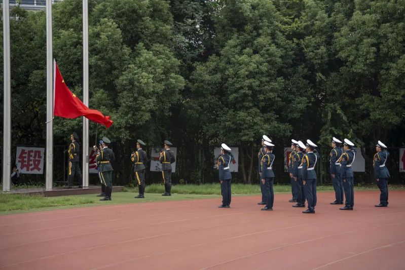 校國旗護衛(wèi)隊邁著鏗鏘堅定的步伐昂首前行,每一步都飽含赤誠;鮮艷的五星紅旗在朝陽映照下,于師生的肅立注目中冉冉升起、迎風展揚。嘹亮國歌回蕩校園,師生目光緊緊追隨著國旗,“青春向黨,強國有我” 的信念,在這莊嚴時刻深深鐫刻心間。