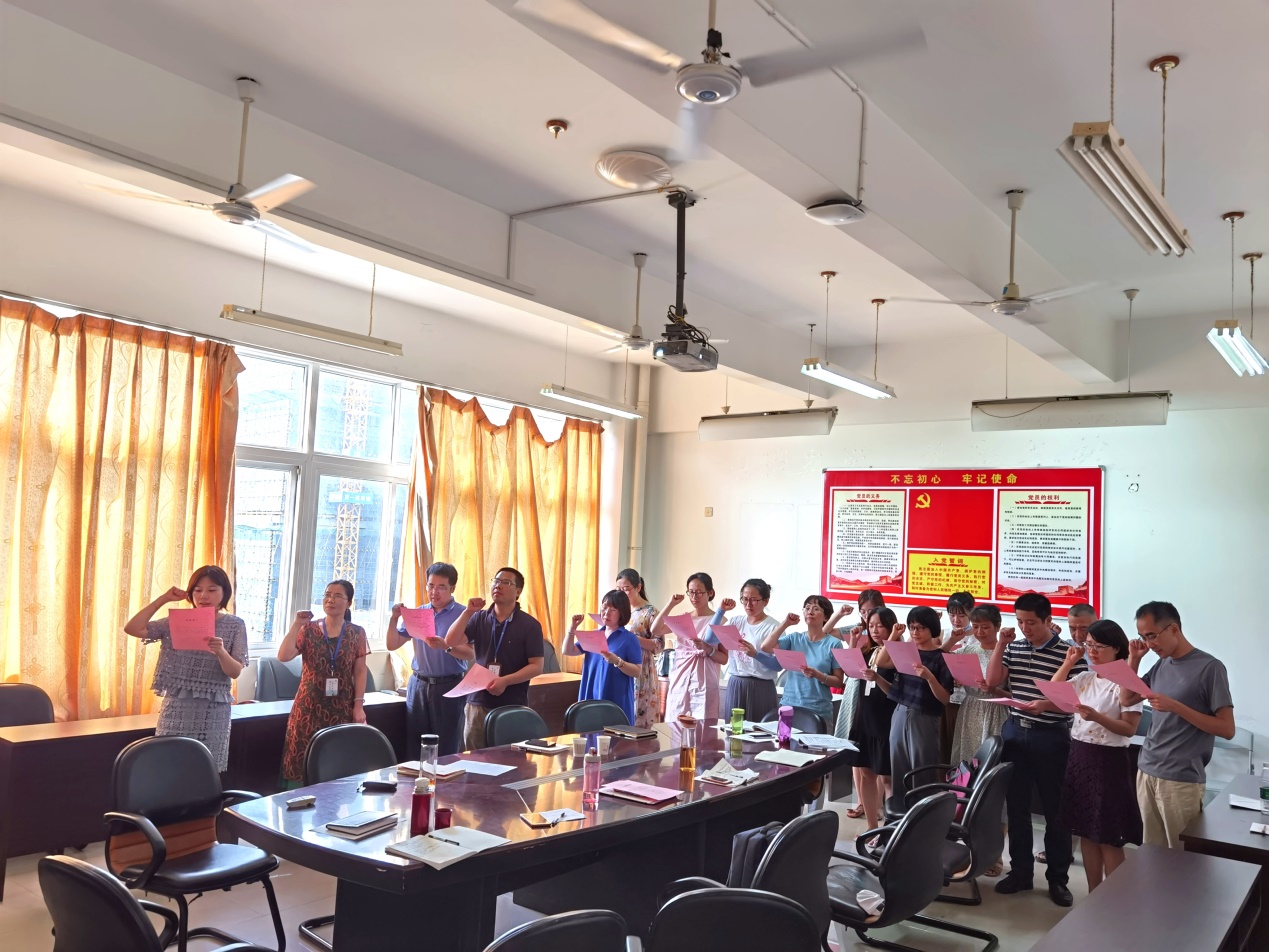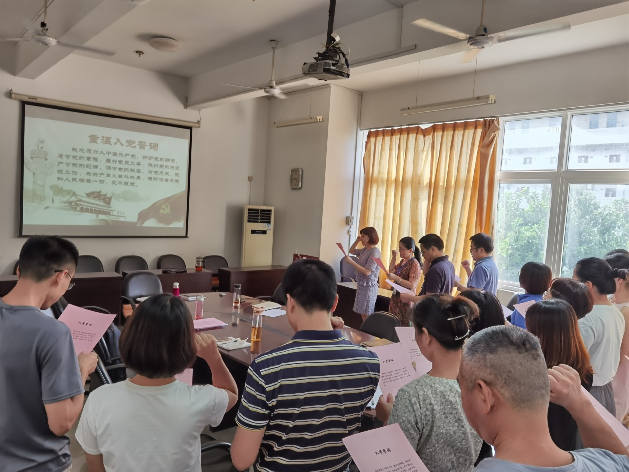 為紀(jì)念中國(guó)共產(chǎn)黨建黨99周年,激勵(lì)廣大黨員堅(jiān)定理想信念,不忘初心、牢記使命,增強(qiáng)黨組織的凝聚力和戰(zhàn)斗力,我們進(jìn)行了今天的第二項(xiàng)議程,重溫入黨誓詞,向黨宣誓活動(dòng),第二黨支部全體黨員在林穎同志的領(lǐng)讀下,莊嚴(yán)地宣讀了入黨誓詞。