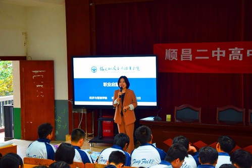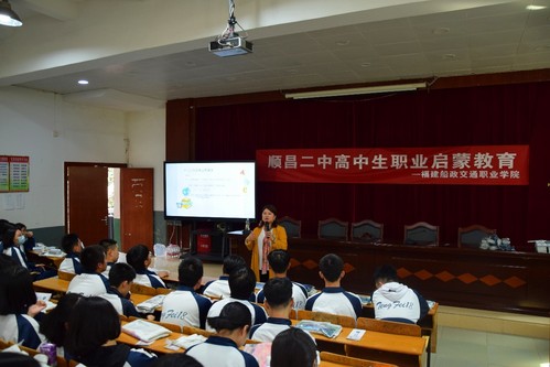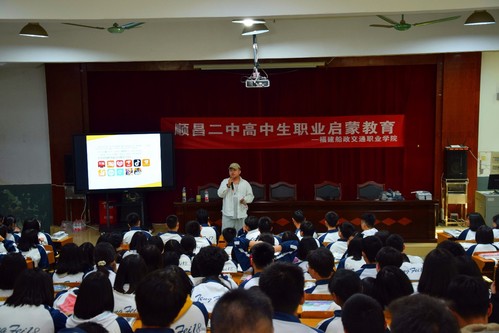 為深入貫徹落實(shí)《國家職業(yè)教育改革實(shí)施方案》,加強(qiáng)中小學(xué)生職業(yè)啟蒙教育,完成新時(shí)代賦予教育的歷史使命,充分發(fā)揮福建船政交通職業(yè)學(xué)院國家“雙高計(jì)劃”建設(shè)單位的優(yōu)勢、職業(yè)教育資源優(yōu)勢以及現(xiàn)代職教文化特色,11月2日,福建船政交通職業(yè)學(xué)院經(jīng)濟(jì)與管理學(xué)院副院長林穎、市場營銷教研室主任陳華、電子商務(wù)教研室主任陳樂天、市場營銷專業(yè)教師湯曉玲一行赴南平市順昌二中開展職業(yè)啟蒙教育活動,并為同學(xué)們帶來了豐富的宣傳物資及學(xué)院精美的文創(chuàng)禮品。