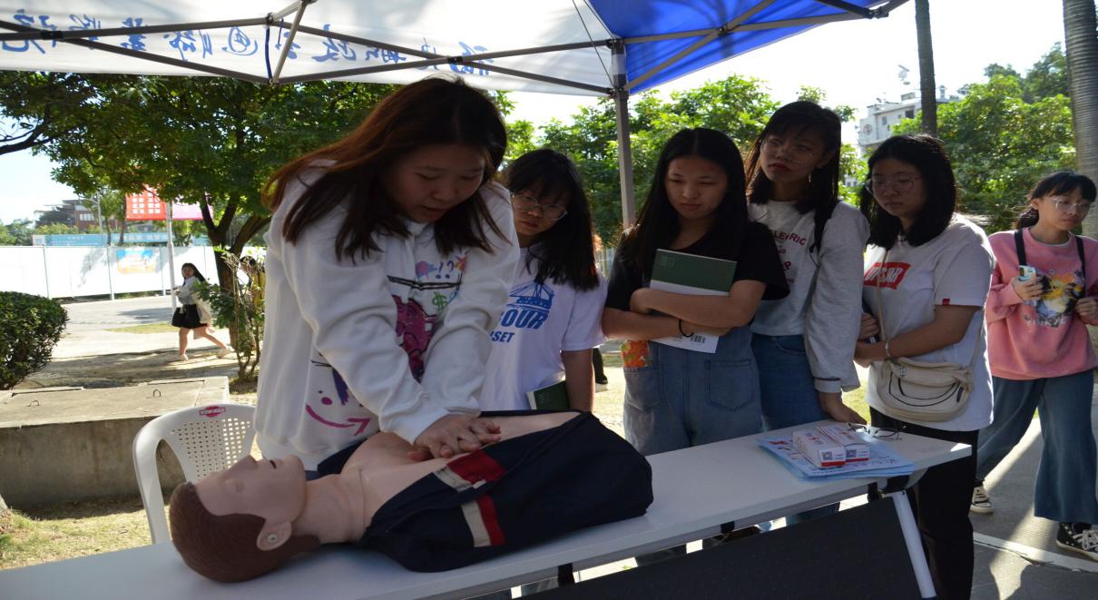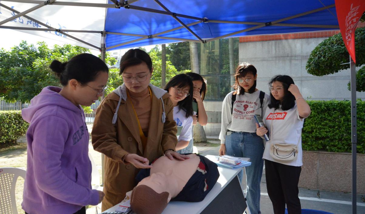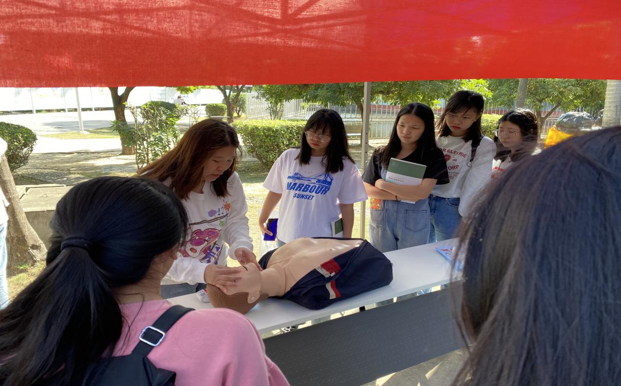 經(jīng)管學(xué)院嚴(yán)敏琳老師講解了心肺復(fù)蘇等安全知識,并利用模擬人給大家作了心肺復(fù)蘇的現(xiàn)場示范,對日常生活中容易出現(xiàn)的突發(fā)意外急救措施與學(xué)員積極互動。