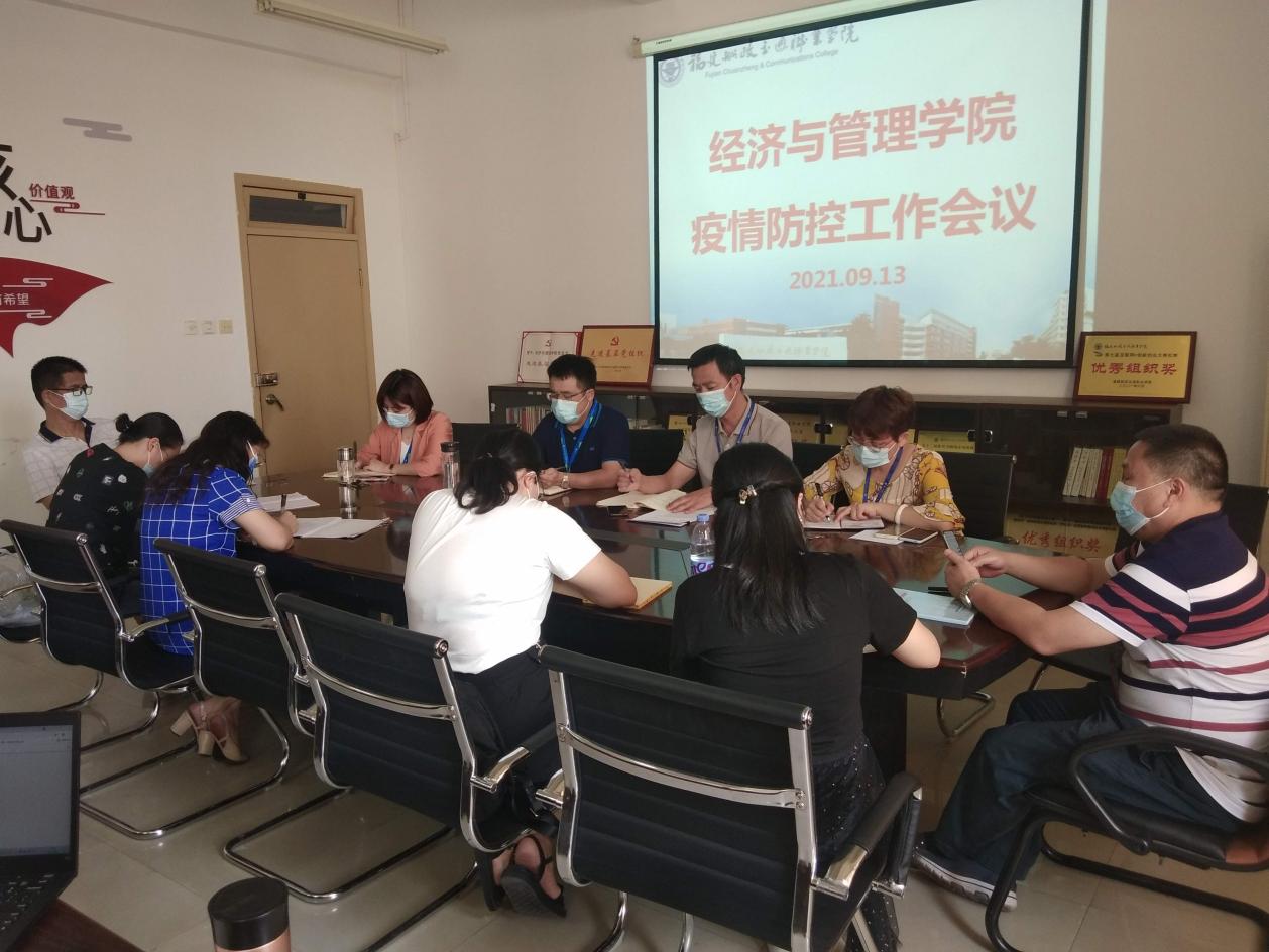 9月13日下午,經(jīng)濟與管理學(xué)院召開疫情防控工作會議,傳達了全省教育系統(tǒng)疫情防控視頻工作會議的精神指示,并部署我院相關(guān)工作。房曰榮院長主持會議,學(xué)院領(lǐng)導(dǎo)、各教研室主任、實訓(xùn)中心主任、辦公室主任、團委書記、全體輔導(dǎo)員、支部書記副書記出席會議。