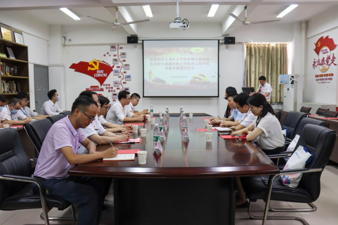 為進(jìn)一步提高我院基層黨組織凝聚力、戰(zhàn)斗力,不斷推動(dòng)我院的建設(shè)和發(fā)展,努力構(gòu)建“資源共享、優(yōu)勢(shì)互補(bǔ)、互相促進(jìn)、共同提高”的黨建工作新格局。2022年6月22日,福建船政交通職業(yè)學(xué)院機(jī)械與智能制造學(xué)院與福建農(nóng)林大學(xué)機(jī)電工程學(xué)院舉行黨建共建簽約儀式。