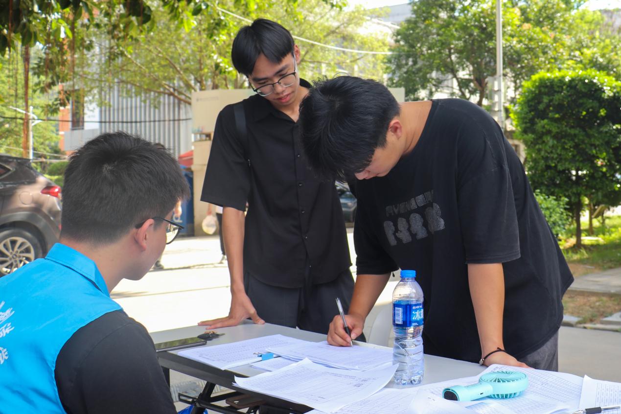 上午,志愿者們早早就位,以飽滿的熱情、細(xì)致入微的工作態(tài)度迎接每一位返校同學(xué)的到來。