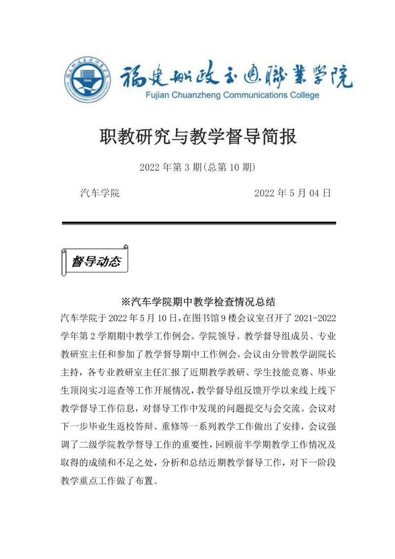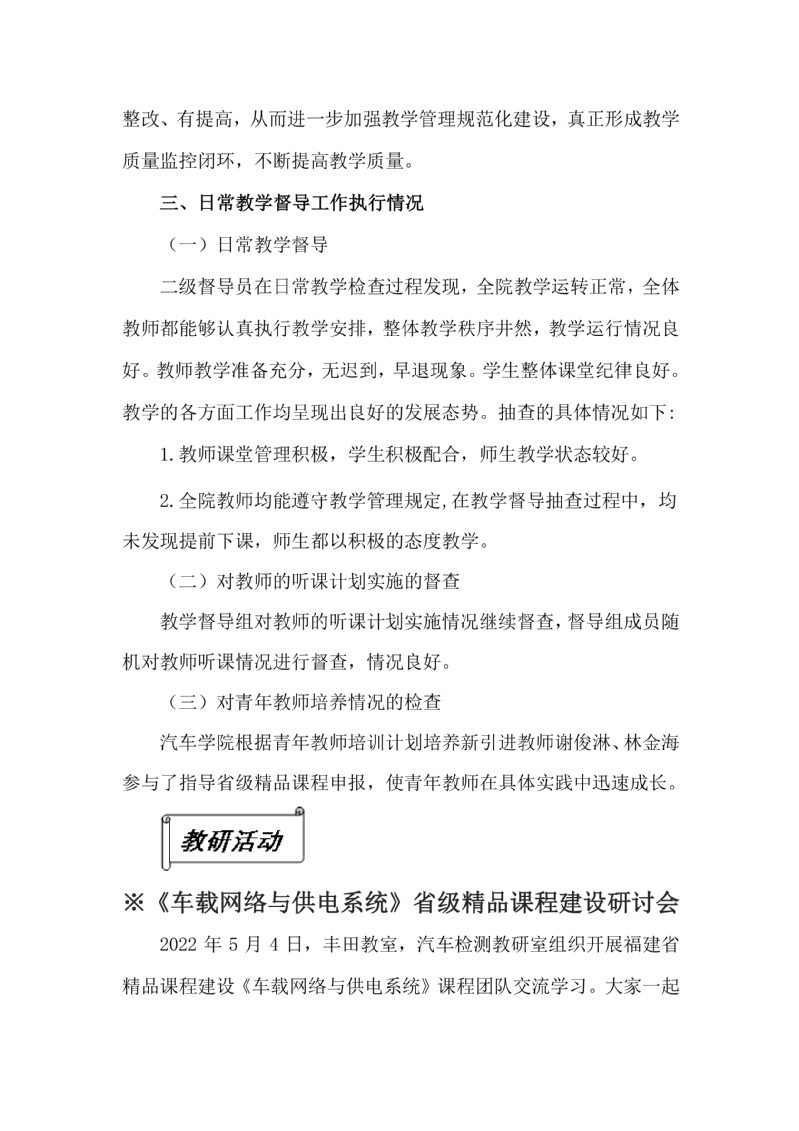 2021-2022-2學(xué)期汽車學(xué)院教學(xué)督導(dǎo)簡報第2期