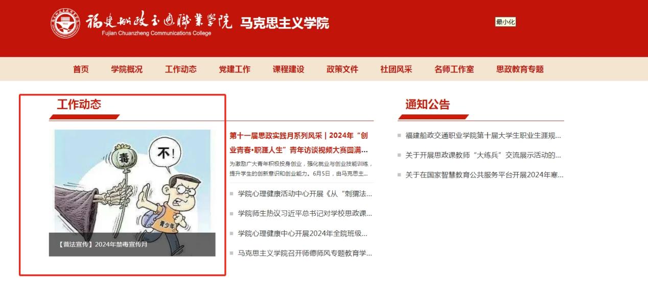 召開2024年“全民禁毒宣傳月”工作會議,及時安排部署了禁毒月宣傳教育活動。學院通過網站大力開展禁毒知識宣傳,突出宣傳主題,創(chuàng)新宣傳形式,推動禁毒宣傳的深入開展,合力營造禁毒宣傳的校園氛圍。