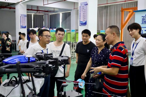 在航空港實(shí)訓(xùn)大廳,介紹了模擬機(jī)艙的各項(xiàng)功能,演示了客艙服務(wù)流程和應(yīng)急設(shè)備操作,展現(xiàn)了高度仿真的職業(yè)教學(xué)環(huán)境與注重實(shí)操能力培養(yǎng)的教學(xué)理念。在無(wú)人機(jī)實(shí)訓(xùn)室,現(xiàn)場(chǎng)演示并解析了無(wú)人機(jī)的結(jié)構(gòu)與應(yīng)用技術(shù),凸顯了學(xué)院在航空領(lǐng)域扎實(shí)的教學(xué)基礎(chǔ)和先進(jìn)的實(shí)景化教學(xué)條件。在維修實(shí)訓(xùn)室,參觀了空客A320實(shí)訓(xùn)真機(jī),講解了現(xiàn)代民用飛機(jī)的系統(tǒng)結(jié)構(gòu)、飛行原理及航空技術(shù)前沿發(fā)展,介紹了圍繞真機(jī)開(kāi)展的實(shí)訓(xùn)課程設(shè)計(jì)情況。