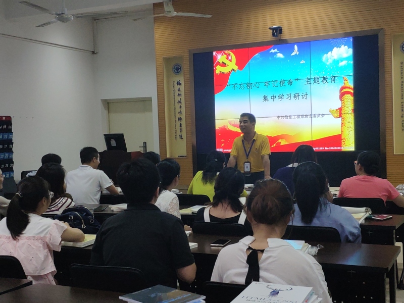 10月9日下午,信息工程系黨總支組織召開(kāi) “不忘初心、牢記使命” 主題教育集中學(xué)習(xí)研討活動(dòng),集體學(xué)習(xí)了《習(xí)近平新時(shí)代中國(guó)特色社會(huì)主義思想學(xué)習(xí)綱要》節(jié)選,黨總支孫基書(shū)記圍繞學(xué)習(xí)貫徹落實(shí)習(xí)近平新時(shí)代中國(guó)特色社會(huì)主義思想、習(xí)近平總書(shū)記關(guān)于“不忘初心、牢記使命”重要論述,以及習(xí)近平總書(shū)記在慶祝中華人民共和國(guó)成立70周年大會(huì)上的重要講話精神,帶頭進(jìn)行了發(fā)言研討。