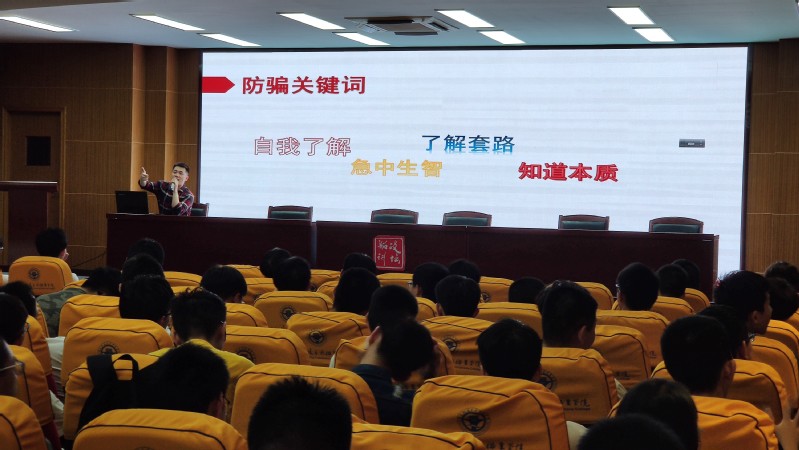 講座伊始,洪警官向同學(xué)們講解了諸如防范詐騙、校園貸、防交通事故、防意外傷害等方面的問(wèn)題。通過(guò)現(xiàn)場(chǎng)游戲互動(dòng)、列舉校園真實(shí)案例、播放典型案例視頻等方式,洪警官指出了大學(xué)生財(cái)產(chǎn)安全意識(shí)意識(shí)淡薄、容易輕信他人,導(dǎo)致錢財(cái)損失、人身安全遭到威脅的現(xiàn)狀。同時(shí),他還向同學(xué)們?cè)敿?xì)介紹了校園套路貸的慣用伎倆及危害性,提醒同學(xué)們不要相信“天上掉下來(lái)的餡餅”,時(shí)刻保持防范與警惕,謹(jǐn)防陷入五花八門的校園貸,提高警惕心和自我保護(hù)能力,遠(yuǎn)離校園貸。