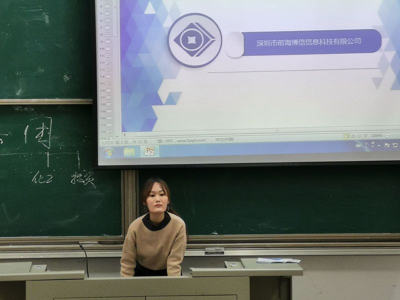 我系于2019年11月25日中午12:40至下午2:00在北區(qū)8#土一階樓舉辦了信息工程系畢業(yè)生校園宣講會,深圳市前海博信信息科技有限公司林小姐為同學(xué)做了簡單的介紹,深圳市前海博信信息科技有限公司成立于2015年01月05日,注冊地位于深圳市前海深港合作區(qū)前灣一路1號A棟201室(入駐深圳市前海商務(wù)秘書有限公司),法人代表為謝志民。經(jīng)營范圍包括一般經(jīng)營項目是:從事計算機(jī)科技、信息技術(shù)、技術(shù)咨詢、技術(shù)服務(wù)、技術(shù)轉(zhuǎn)讓;企業(yè)管理咨詢(不含限制項目);從事?lián)I(yè)務(wù)(不含融資性擔(dān)保業(yè)務(wù));受銀行委托對信貸逾期戶及信用卡透支戶進(jìn)行電話通知服務(wù)(不含金融業(yè)務(wù),憑銀行委托協(xié)議開展服務(wù));信用風(fēng)險管理服務(wù)與咨詢,信用風(fēng)險管理平臺軟件的技術(shù)開發(fā);企業(yè)項目投資策劃咨詢;數(shù)據(jù)庫管理、數(shù)據(jù)庫服務(wù);數(shù)據(jù)挖掘、數(shù)據(jù)分析服務(wù);投資項目策劃;二手車銷售;汽車租賃(不包括帶操作人員的汽車出租);創(chuàng)業(yè)投資業(yè)務(wù);投資咨詢、商務(wù)信息咨詢、企業(yè)管理咨詢、經(jīng)濟(jì)信息咨詢(均不含限制項目)。(依法須經(jīng)批準(zhǔn)的項目,經(jīng)相關(guān)部門批準(zhǔn)后方可開展經(jīng)營活動),許可經(jīng)營項目是:增值電信服務(wù),通訊網(wǎng)絡(luò)工程的設(shè)計及施工;物業(yè)管理;征集、利用企業(yè)信息,開展企業(yè)信用評估與咨詢。深圳市前海博信信息科技有限公司具有4處分機(jī)構(gòu)。