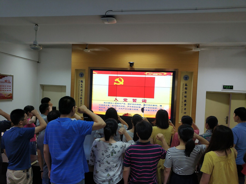 在中國共產(chǎn)黨成立99周年的特殊日子,信息工程系三個支部的全體黨員,在黨總支書記許友孝同志的帶領(lǐng)下,一起重溫了入黨誓詞,在黨旗下再一次表達(dá)了永遠(yuǎn)忠于黨、追隨黨的堅定信仰和決心:“我志愿加入中國共產(chǎn)黨,擁護(hù)黨的綱領(lǐng)、遵守黨的章程、履行黨員義務(wù)、執(zhí)行黨的決定、嚴(yán)守黨的紀(jì)律、保守黨的秘密,對黨忠誠,積極工作,為共產(chǎn)主義奮斗終身,隨時準(zhǔn)備為黨和人民犧牲一切,永不叛黨!”在誓言的見證下,全體黨員的臉上露出莊嚴(yán)神圣的神情,大家心潮澎湃,為黨和祖國取得的成就激動不已。