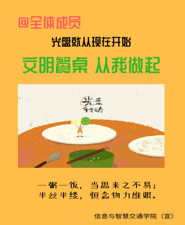 為認真落實習近平新時代中國特色社會主義思想和黨的十九大精神,深入實施國家糧食安全戰(zhàn)略,建立健全糧食安全宣傳教育長效機制。信息與智慧交通學院開展了一系列糧食安全宣傳周教育活動。本次糧食安全宣傳周教育活動緊密圍繞“端牢中國飯碗 共端筑全球糧安”的主題,經(jīng)過我院認真籌備,細心規(guī)劃,2020年糧食安全宣傳周教育一系列活動圓滿落幕。