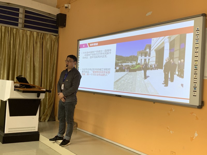 林祥謙,閩侯籍“二七”革命烈士,中國工人階級的杰出代表和中國工人運動的先驅(qū)者。白鋒橋老師從中國工人運動背景、林祥謙事跡介紹、青年寄語等方面講述了林祥謙從事革命活動的軌跡,謳歌了林祥謙大義凜然、慷慨赴死的革命精神。白鋒橋老師最后引用習(xí)近平總書記考察福建高校對青年學(xué)生的寄語,鼓勵學(xué)生要“德智體美勞全面發(fā)展,做一個對社會有益的人”。