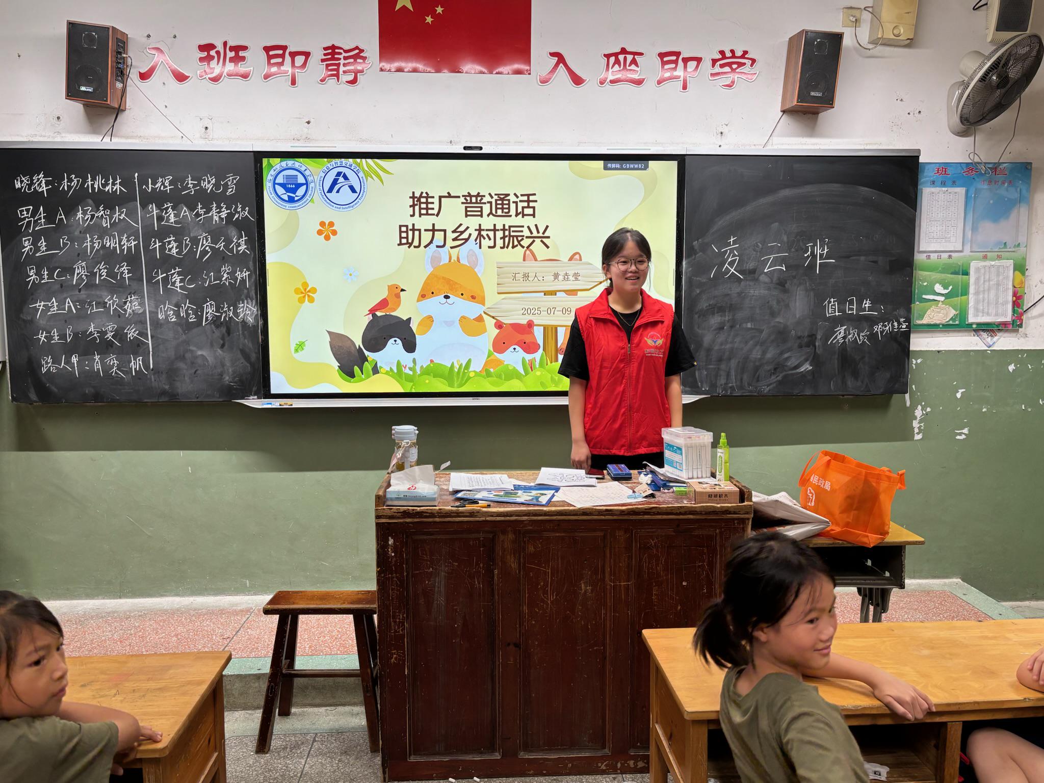 普通話,是打破地域隔閡的紐帶,更是鄉(xiāng)村振興中文化交融的重要基石。每一句標準的發(fā)音,都承載著溝通的便利,寄托著鄉(xiāng)村發(fā)展的無限可能。為了讓這份意義深入童心,促進團精心設(shè)計了"普通話小課堂",通過趣味繞口令、情景對話等形式,讓語言學習充滿歡聲笑語。孩子們清脆的朗讀聲里,飽含著對語言魅力的領(lǐng)悟——這既是對文化傳承最生動的實踐,也是對鄉(xiāng)村未來最美好的期許。當標準的普通話在田野間回蕩,鄉(xiāng)村振興的道路正因語言的橋梁而更加寬廣。