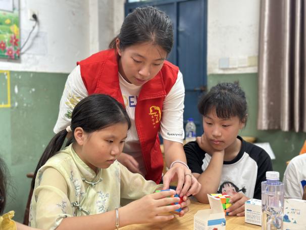 在泰寧的夏日課堂,支教的青春身影熠熠生輝。促進團俯身教孩子們玩轉(zhuǎn)魔方,指尖轉(zhuǎn)動間,是思維啟迪的奇妙旅程;站上講臺講“軟筆書法第一課”,筆觸游走時,讓墨香沁入童真。這一趟支教行,以知識為舟,載著熱忱與希望,在孩子們心湖泛起波光,也讓青春在鄉(xiāng)野支教中,書寫照亮成長的溫暖注腳 。