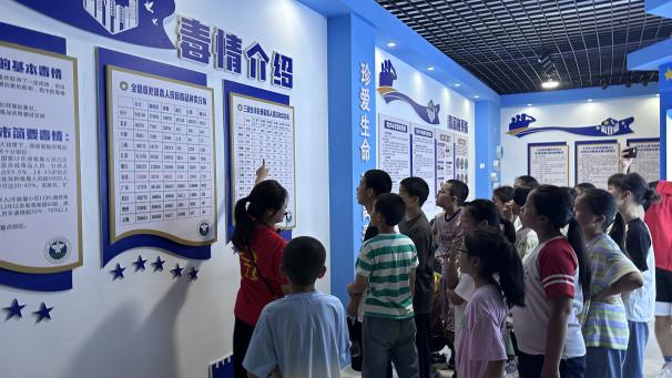 在泰寧縣禁毒教育展廳,踐行團(tuán)成員化身為“禁毒宣講員”,帶領(lǐng)孩子們近距離觀察仿真毒品樣本,解讀毒情數(shù)據(jù)看板。通過玻璃展柜里的“偽裝陷阱”、墻上觸目驚心的案例,將抽象的禁毒知識具象化。當(dāng)孩子們踮起腳尖辨認(rèn)“彩色糖果”般的新型毒品時,防毒拒毒的安全意識已實(shí)現(xiàn)有效滲透——這是實(shí)踐團(tuán)在“三下鄉(xiāng)”活動中,為鄉(xiāng)土青少年構(gòu)建安全防護(hù)體系的重要實(shí)踐縮影。