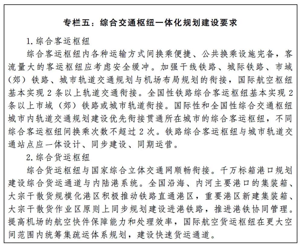 ——專欄五:綜合交通樞紐一體化規(guī)劃建設(shè)要求