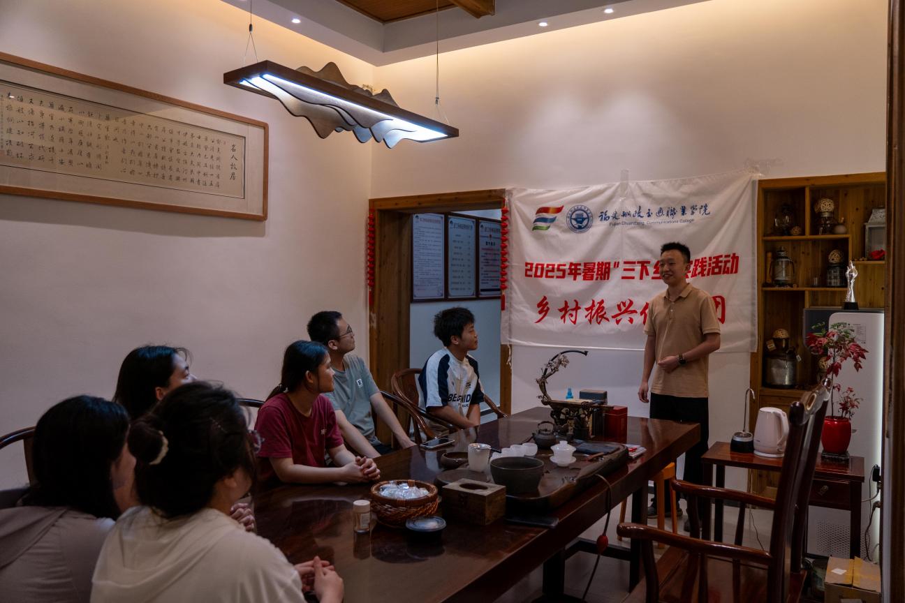 實(shí)踐期間,實(shí)踐團(tuán)有幸迎來了一位以實(shí)干助力鄉(xiāng)村振興的優(yōu)秀校友——鄭永琪。作為福建省2024屆選調(diào)生,他于2024年7月主動(dòng)投身基層,來到連城縣朋口鎮(zhèn)朋城村擔(dān)任黨支部書記助理。這片兼具地理優(yōu)勢(shì)與產(chǎn)業(yè)活力的土地,正需要年輕力量的注入:這里是205國道與319國道交匯處,毗鄰冠豸山南動(dòng)車站,蘭花產(chǎn)業(yè)形成“黨建+合作社+農(nóng)戶”的全產(chǎn)業(yè)鏈,家具產(chǎn)業(yè)憑借豐富林竹資源聚集成群,還有多家名優(yōu)企業(yè)帶動(dòng)就業(yè)與稅收。