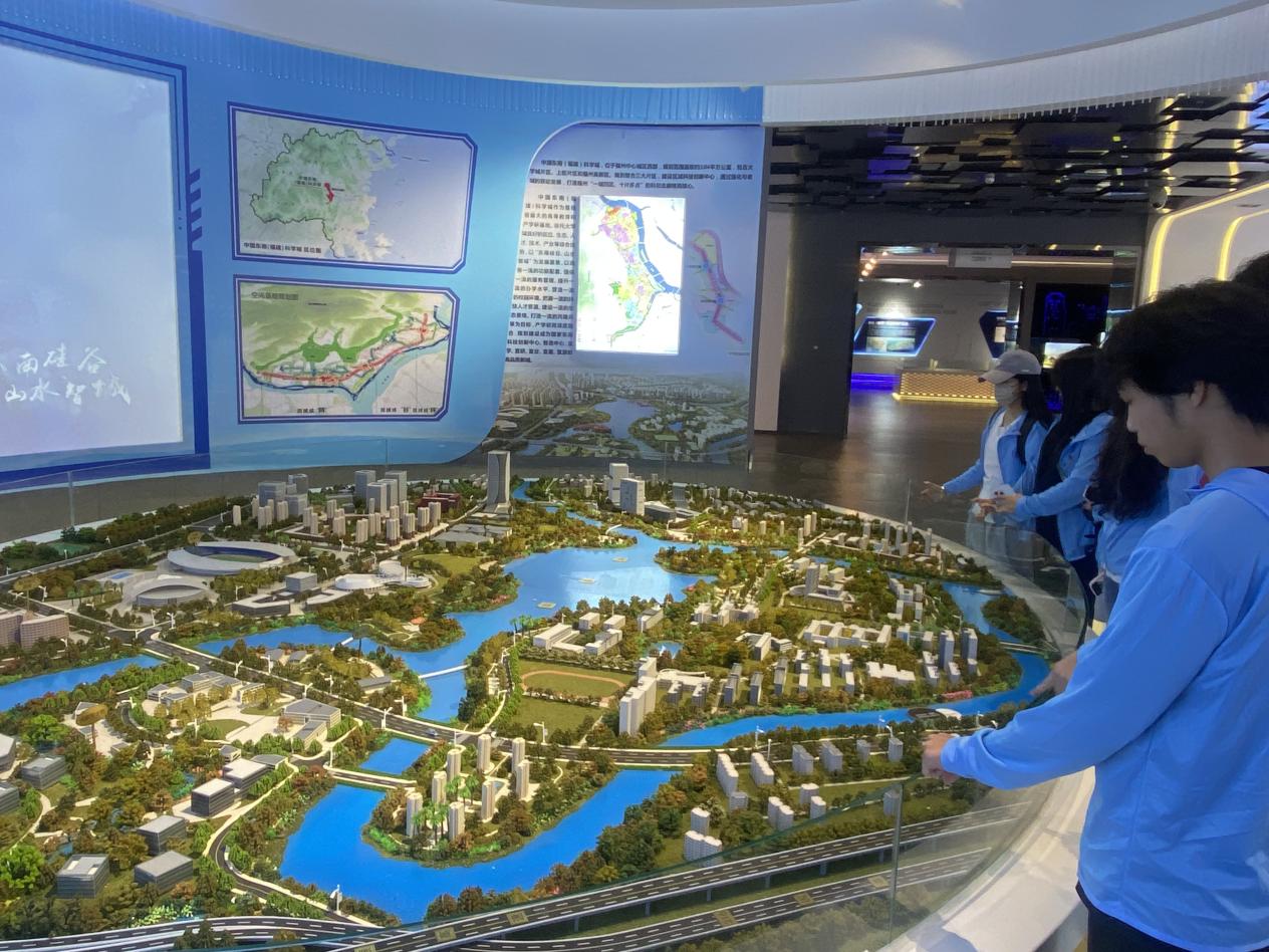 告別歷史的厚重,實踐團走進了充滿現(xiàn)代科技感的福州規(guī)劃館。