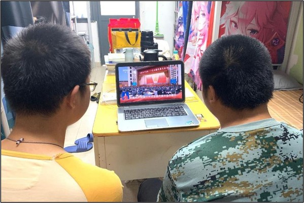 學(xué)院教職工在南區(qū)新實訓(xùn)大樓南樓709教室觀看直播