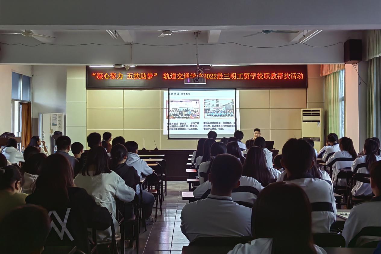 2022年10月20日,在黨的二十大勝利召開之際,福建船政交通職業(yè)學院軌道交通學院陳天炎院長率教師、學生代表一行,赴福建省三明工貿學校開展了多場別開生面的職教幫扶活動。開展職教幫扶活動不僅是“雙高”建設的重點任務,也是進一步加深中、高職院校交流合作,發(fā)揮雙方院校在辦學理念和專業(yè)特色上的優(yōu)勢,培養(yǎng)高素質技術技能人才的重要舉措。