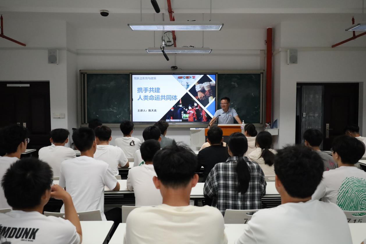 為加強(qiáng)大學(xué)生對(duì)全球發(fā)展倡議、全球安全倡議以及構(gòu)建人類命運(yùn)共同體的了解,2022年9月20日,軌道交通學(xué)院院長(zhǎng)陳天炎以“攜手共建人類命運(yùn)共同體”為軌道交通學(xué)院學(xué)生干部上形勢(shì)與政策課。