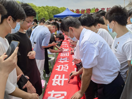 4月15日,通識(shí)教育學(xué)院組織師生在北區(qū)體育場(chǎng)舉行了國家安全教育日宣誓簽名活動(dòng),300余人參加?;顒?dòng)中,學(xué)生代表帶領(lǐng)進(jìn)行“爭做新時(shí)代國家安全的鋼鐵衛(wèi)士宣誓”,隨后全體師生為踐行宣誓承諾進(jìn)行簽名,切實(shí)提高了廣大師生的國家安全意識(shí),培養(yǎng)大學(xué)生的愛國主義精神。