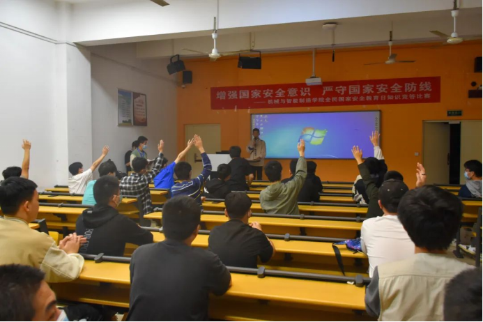 機(jī)械與智能制造學(xué)院于4月15日舉行“國家安全日知識(shí)競(jìng)答”活動(dòng),學(xué)生通過觀看視頻,在有限的時(shí)間內(nèi)記住視頻中所要傳達(dá)的關(guān)鍵點(diǎn)進(jìn)行競(jìng)答,活動(dòng)現(xiàn)場(chǎng)氣氛熱烈,收效良好。