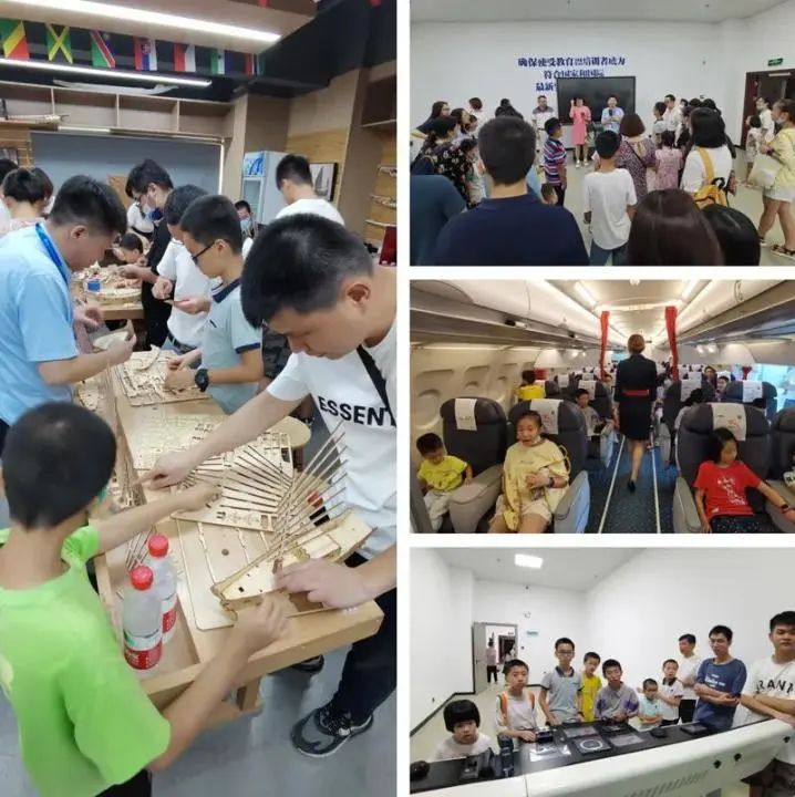孩子們走進(jìn)航海模擬器,透過駕駛艙的屏幕,在360度的大屏幕上模擬在各種海域航行情況;通過船體模型拼裝,學(xué)習(xí)了船在水中航行的原理;參觀飛機(jī)模擬客艙,感受空乘的工作場景,體驗(yàn)購票、值機(jī)、安檢、乘坐飛機(jī)過程。