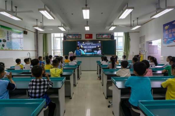 5月19日,我院機(jī)器人協(xié)會(huì)在福州市施程小學(xué)開展“職教周”、“科技周”系列活動(dòng)之“助力科學(xué)普及,放飛科技?jí)粝搿睓C(jī)器人科普進(jìn)校園活動(dòng)。此次活動(dòng)共有3項(xiàng)科普內(nèi)容,分別是機(jī)器人知識(shí)普及、機(jī)器人作品展示與體驗(yàn)與機(jī)器人知識(shí)競(jìng)答?;顒?dòng)中,我院機(jī)器人協(xié)會(huì)成員向同學(xué)們講解了各類人工智能機(jī)器人在多個(gè)領(lǐng)域的神奇作用,小朋友們對(duì)此反應(yīng)熱烈,引發(fā)了他們對(duì)未來(lái)智能社會(huì)的無(wú)限暢想,課堂氣氛濃厚活躍。