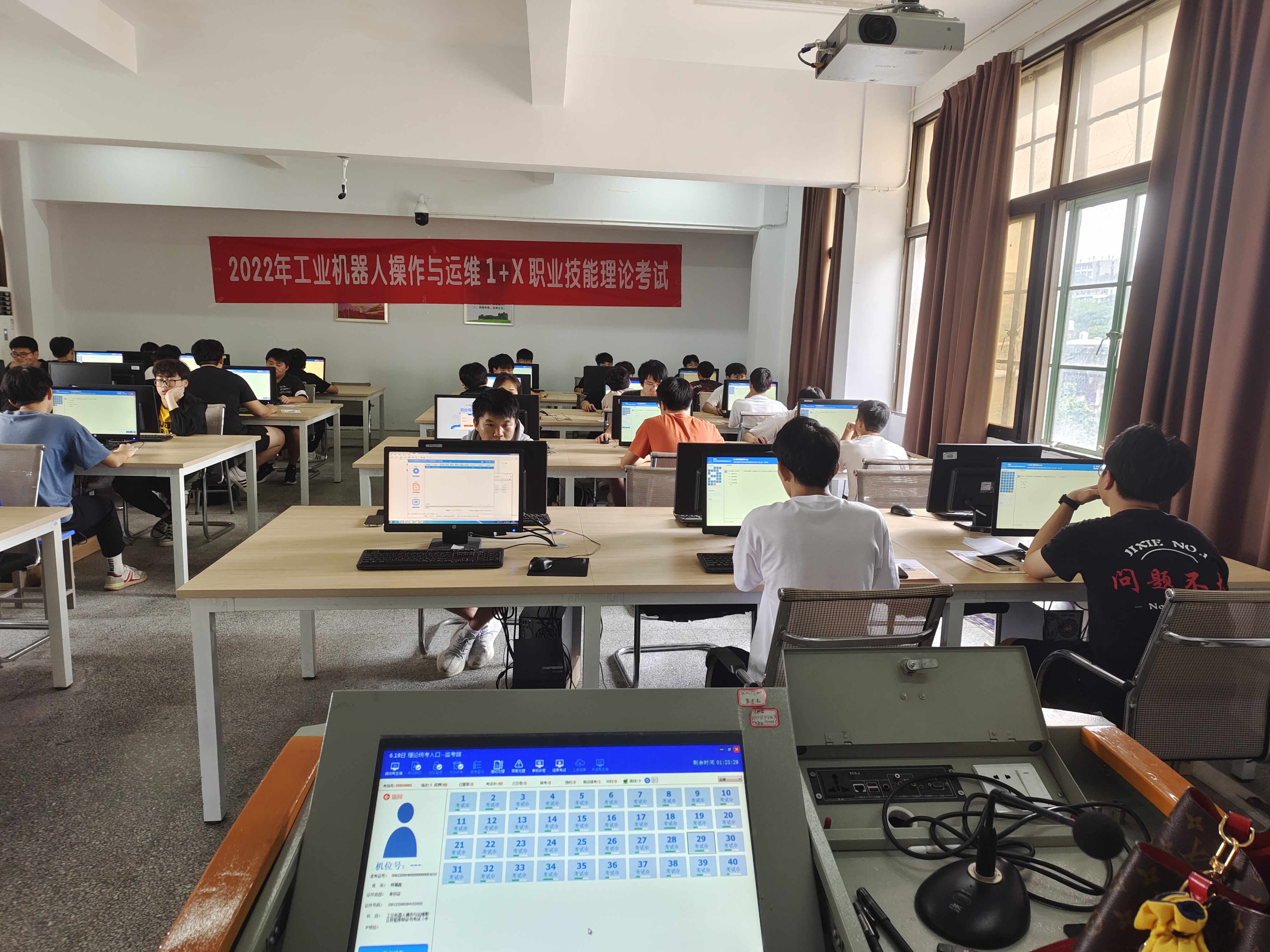 為貫徹落實(shí)《國家職業(yè)教育改革實(shí)施方案》和《關(guān)于在院校實(shí)施“學(xué)歷證書若干職業(yè)技能等級證書”制度試點(diǎn)方案》等文件精神。我校與2022年6月19日、26日分別進(jìn)行了工業(yè)機(jī)器人操作與運(yùn)維1+X證書試點(diǎn)理論考試、實(shí)操考試。本次考證對象為20級工業(yè)機(jī)器人技術(shù)專業(yè)學(xué)生共計(jì)80人,圓滿完成了本年度的考核。